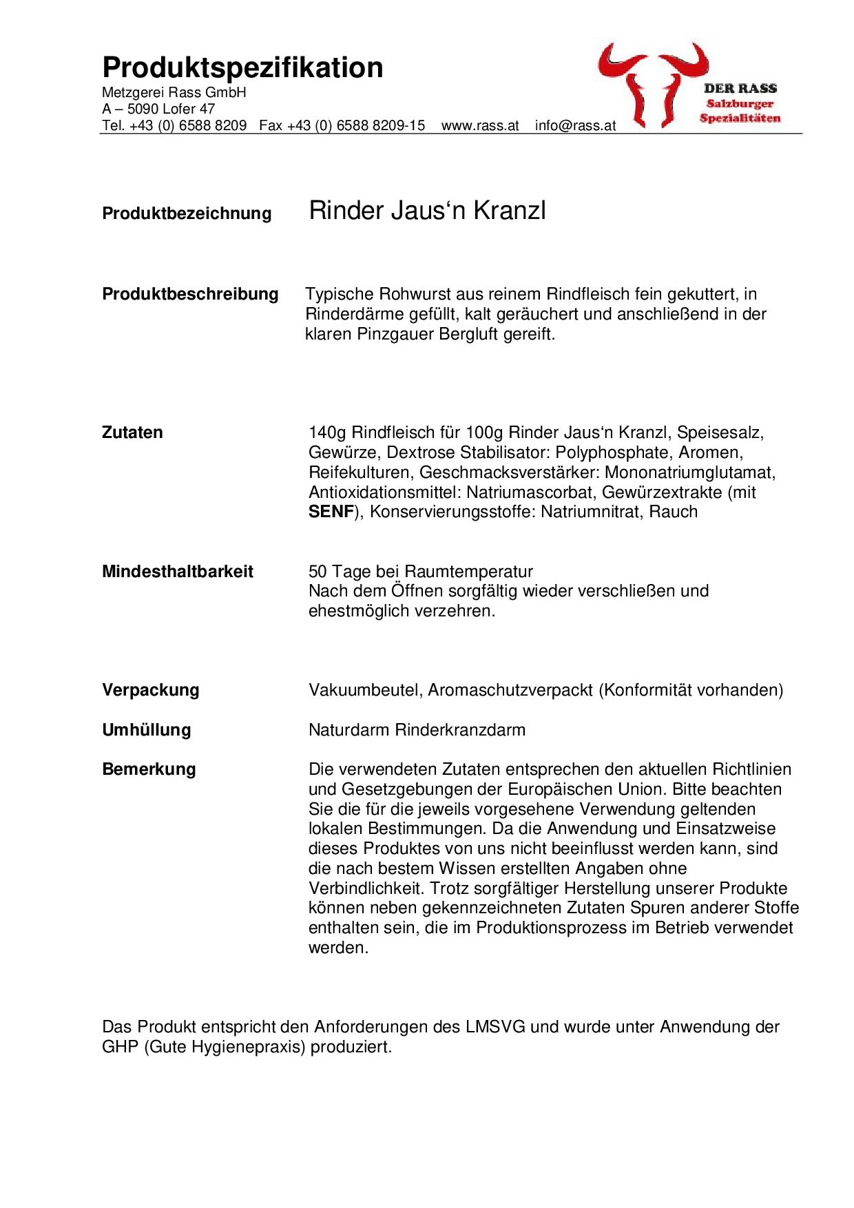 Bestes Rindfleisch und eine eigene Rohgewürzmischung bilden die Basis für unsere Rinderjaus’n Kranzl. Ihre Vollendung erhalten sie nach 1-wöchiger Reife- und Räucherzeit und anschließender 2-wöchiger Trocknung in der frischen Pinzgauer Bergluft.