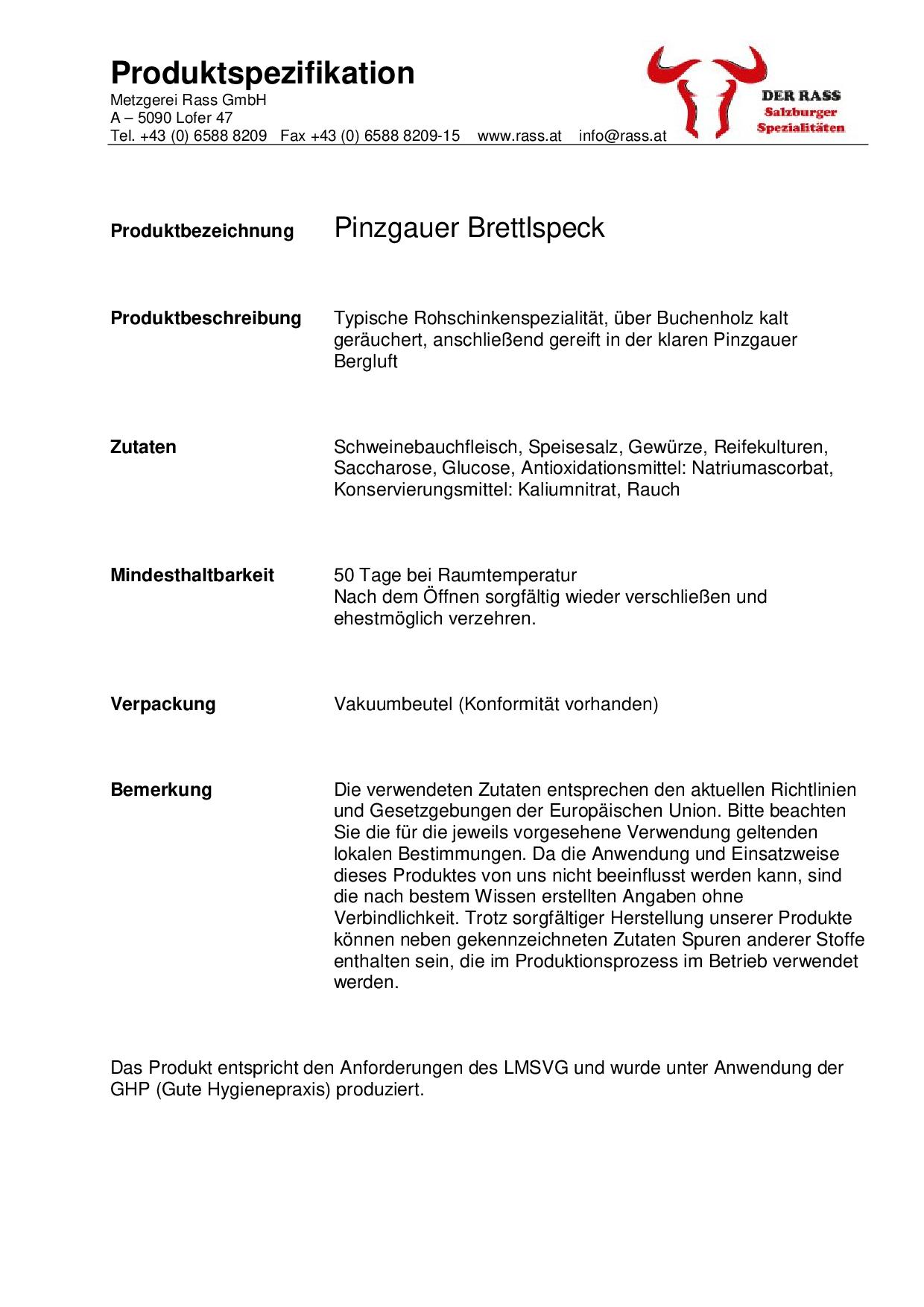 Für diese Pinzgauer Spezialität werden nur beste Bauchstücke von Schweinen regionaler Herkunft und naturnaher Haltung nach überlieferten Rezepten händisch gesalzen und gewürzt, anschließend ca. 10 Tage in naturbelassenem Nadel- und Buchenholz geräuchert und noch 6 Wochen in der klaren Pinzgauer Bergluft getrocknet.